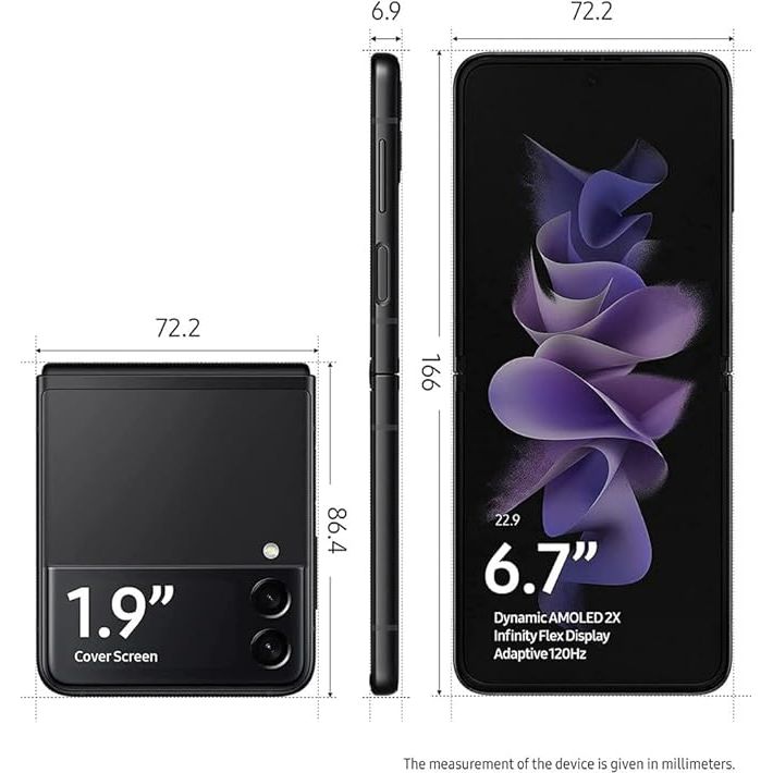 Display: Main Display: 6.7-inch Dynamic AMOLED 2X foldable display with Full HD+ resolution (2640 x 1080 pixels), offering vibrant colors and crisp visuals when unfolded. Cover Display: 1.9-inch Super AMOLED display with 260 x 512 pixels resolution, providing quick access to notifications, time, and other information when the device is folded.